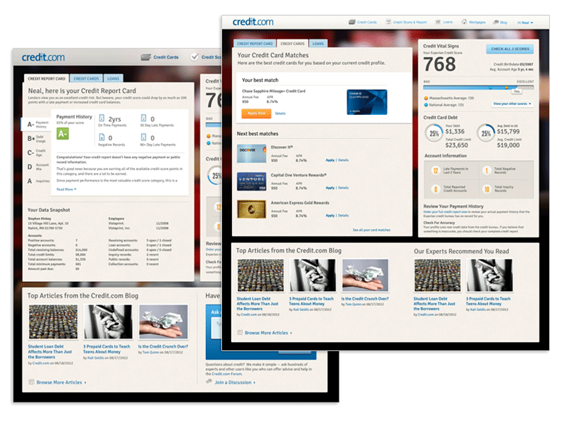 Consumer Credit Dashboard - View 2/3: Credit.com (concepting + creative direction)