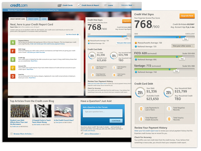 Consumer Credit Dashboard - View 1: Credit.com (concepting + creative direction)