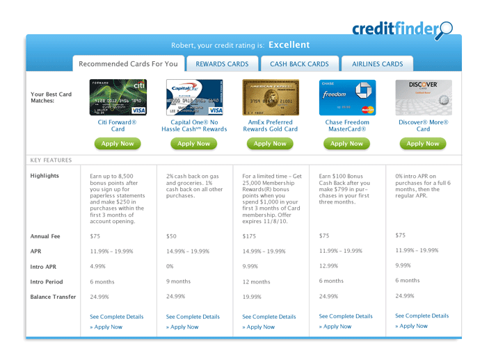 Credit Card Matching Tool: Credit.com (concepting + design)