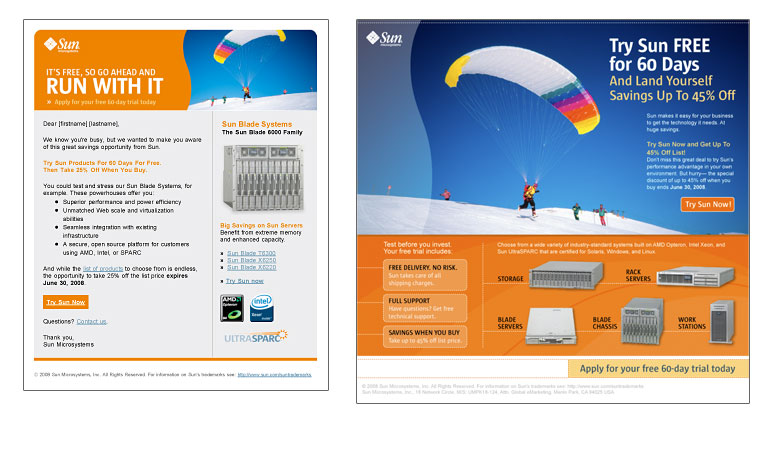 HTML Email and Web Landing Page: Sun Microsystems (concepting + design + coding)