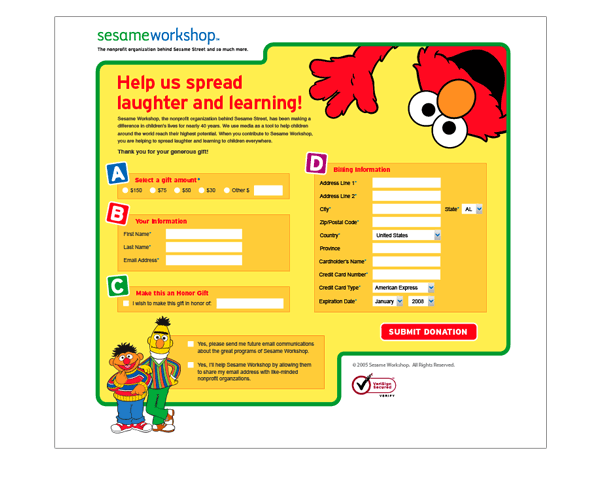 Fundraising Web Landing Page: Sesame Workshop (concepting + design)