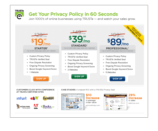 Product Special Offer Page: TRUSTe (concepting + design + coding)